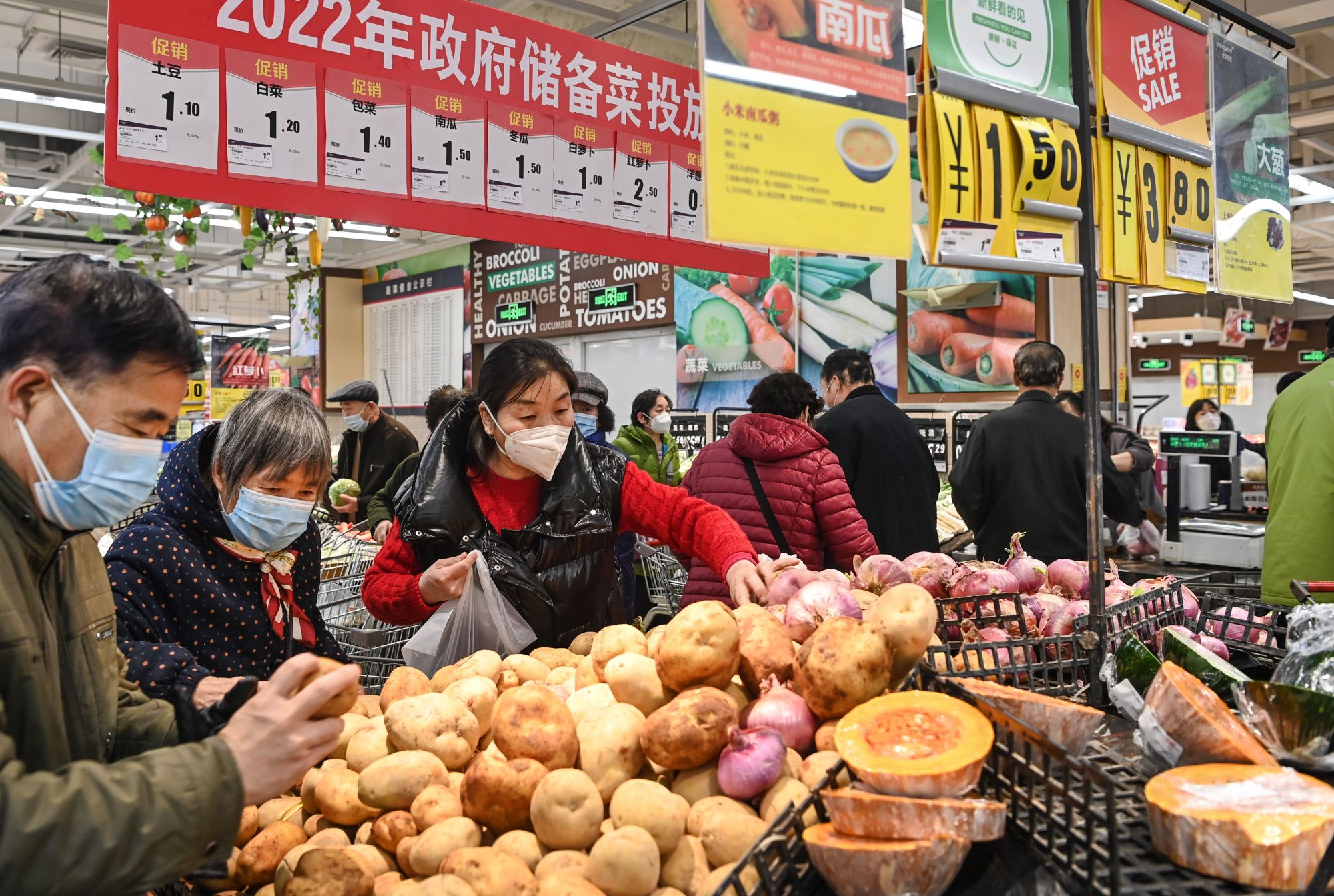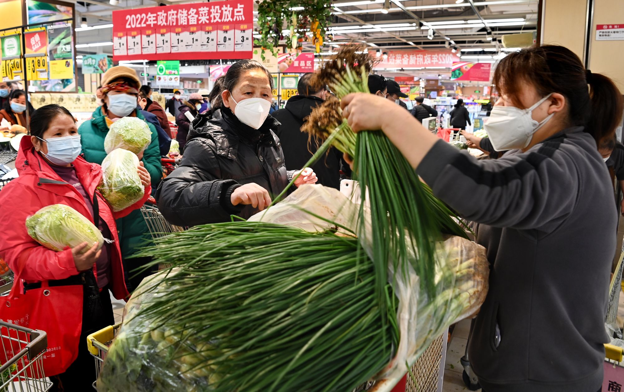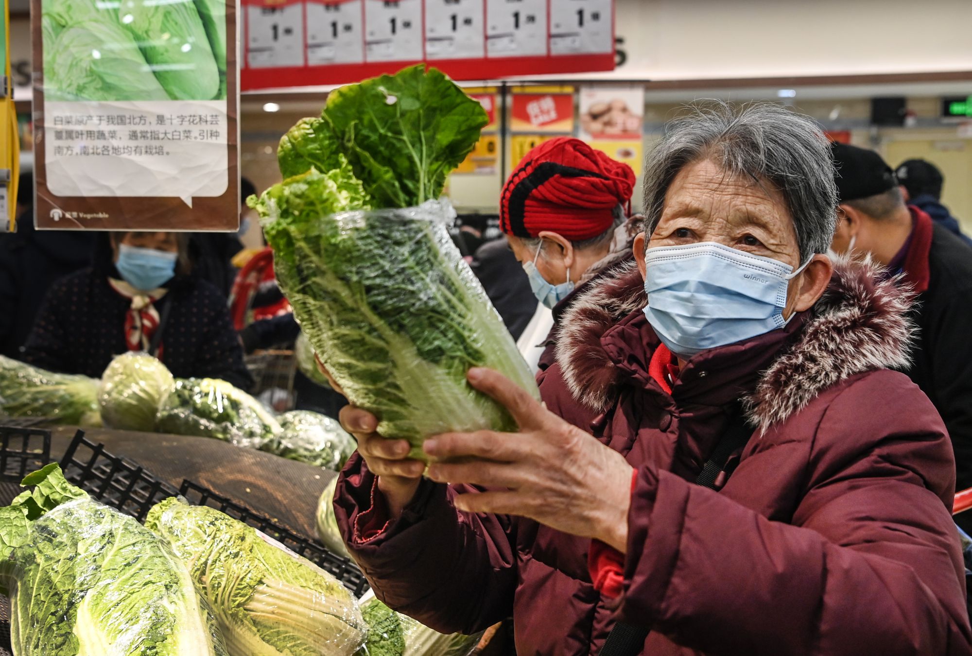 1月24日,市民在西安市朝阳门外的一家大型超市选购政府投放的储备蔬菜。