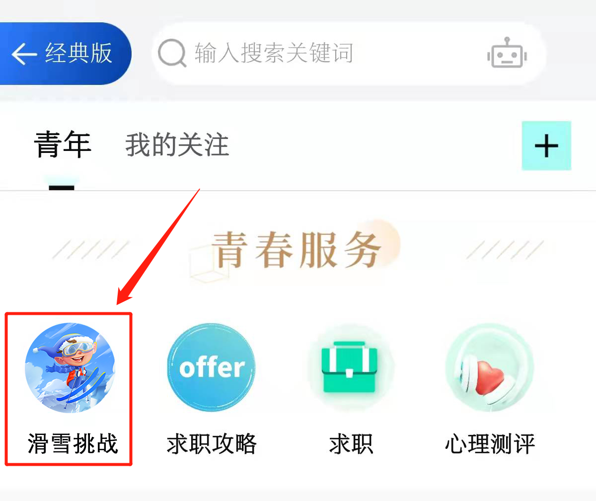 下滑找到青春服务栏目
