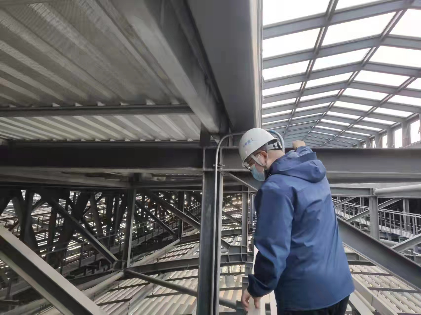 李硕是团队技术负责人。除夕一大早,他和工友就开始了一天忙碌的工作。清河站的天花吊顶呈弧形,由一万多根铝圆管组成。他们沿着检修间的楼梯向上爬,到达吊顶处的检修“马道”,开始逐点检查,圆管固定结点螺丝有没有松动,照明灯具有没有晃动,管线有没有破损……这样的“马道”约长170米,整个屋面共有31条。