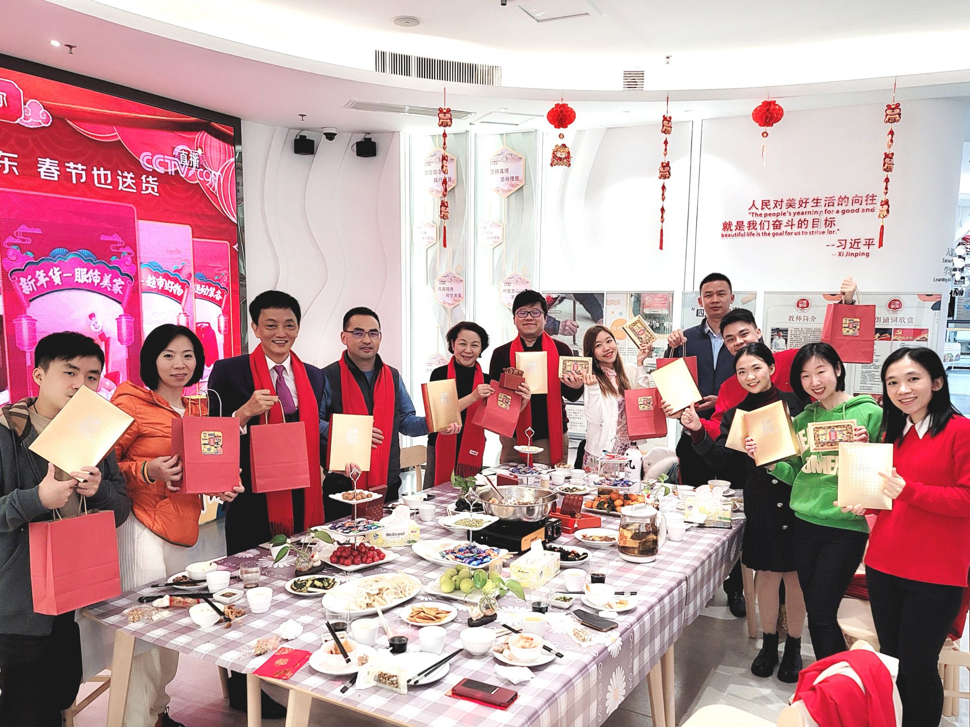 在深圳蛇口举行的“留深过年也精彩——深港青年相约除夕夜”主题活动上,香港青年杨翠儿(中间穿白色上衣者)说自己感受到了深深的年味。图片由受访者提供