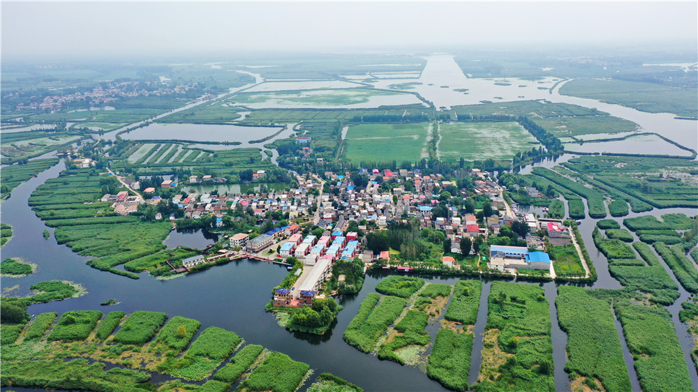 这是白洋淀内的村庄(2021年8月14日摄,无人机照片)。新华社记者 牟宇 摄