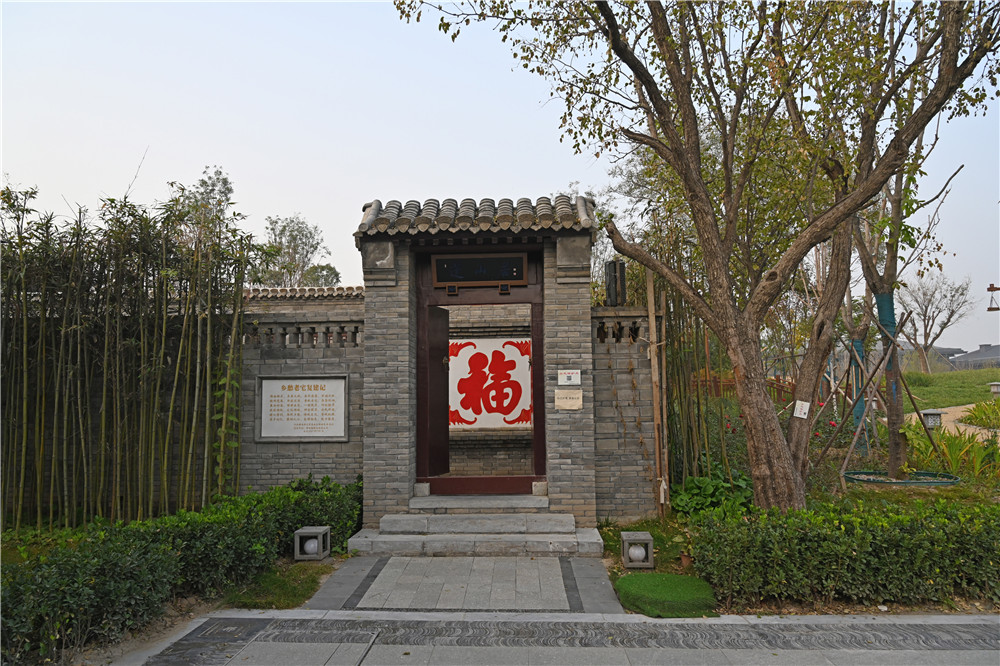 雄安新区公共服务局乡愁专班组长辛公舜说,郊野公园施工时出现了工程建设和“金玉璞家老宅”位置冲突的现象,他们采取活态保护政策,将老宅原址重建工作纳入郊野公园邢台展园项目区的规划设计中,以原有建筑格局、建筑材料为基础,融合地方元素,形成了独具雄安地域特色的建筑风貌。