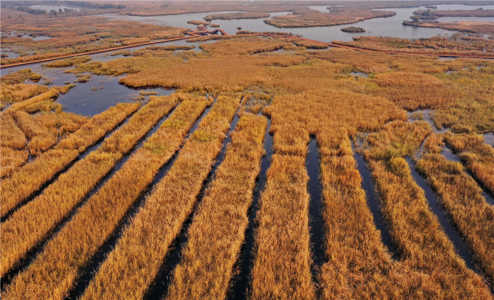 白洋淀内的芦苇荡(2020年11月5日摄,无人机照片)。新华社记者 牟宇 摄