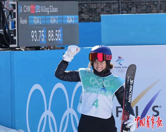 谷爱凌在自由式滑雪女子大跳台决赛最后一跳中,冒险选择了此前从未完成过的1620度转体并成功落地,成为这个新奥运项目的首个冬奥会女子冠军。在赛后新闻发布会上,谷爱凌说:“我不是来打败其他运动员的,我是想打破自己的界限。无论落不落,我都是赢了,我希望通过这个(尝试),让更多女孩打破自己的界限。”