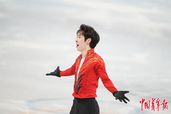 2月10日,北京首都体育馆,中国选手金博洋在北京冬奥会花样滑冰男子单人滑自由滑比赛中。他最终获得179.45分,创造了个人本赛季最高分。中青报·中青网记者 李隽辉/摄