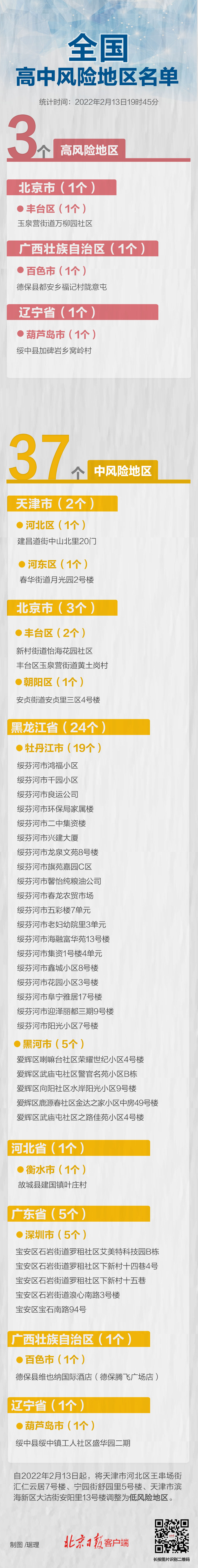 据津云消息,自2022年2月13日起,天津市河北区王串场街汇仁云居7号楼、宁园街舒园里5号楼、天津市滨海新区大沽街安阳里13号楼调整为低风险地区。