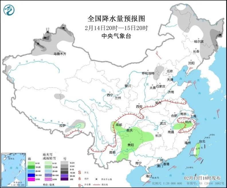 16日至18日,西北、华北、内蒙古中东部、东北地区中南部及河南、山东西部、安徽中北部、江苏西北部、湖北西部、湖南西北部等地有小到中雪或雨夹雪,四川盆地、江南中部及其以南大部有小到中雨,江西中部局地有大雨。