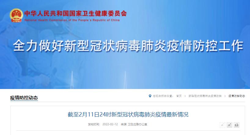 2月11日0—24时,31个省(自治区、直辖市)和新疆生产建设兵团报告新增确诊病例99例。其中境外输入病例59例(广东24例,福建14例,上海7例,四川5例,山东3例,辽宁2例,广西2例,天津1例,黑龙江1例),含10例由无症状感染者转为确诊病例(广东5例,四川4例,广西1例);本土病例40例(广西30例,均在百色市;辽宁10例,均在葫芦岛市)。无新增死亡病例。新增疑似病例1例,为境外输入病例(在上海)。