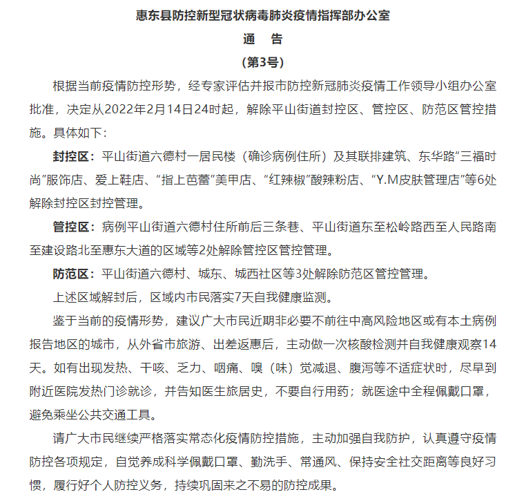 记者从相关部门获悉,广东惠州全市全部封控管控解除,具体通告内容如下。