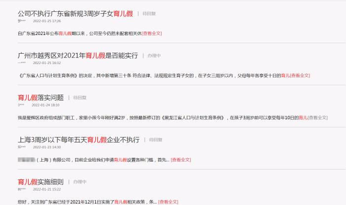 各地网友反映育儿假执行问题。来源:人民网“领导留言板”
