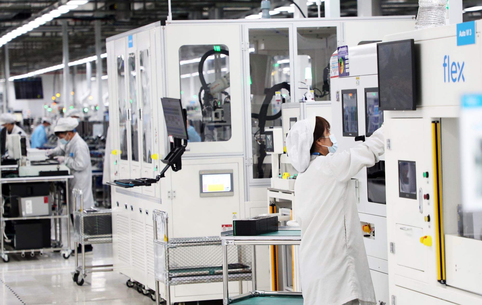 伟创力电子技术(苏州)有限公司苏虹路工厂生产车间。(受访者供图)