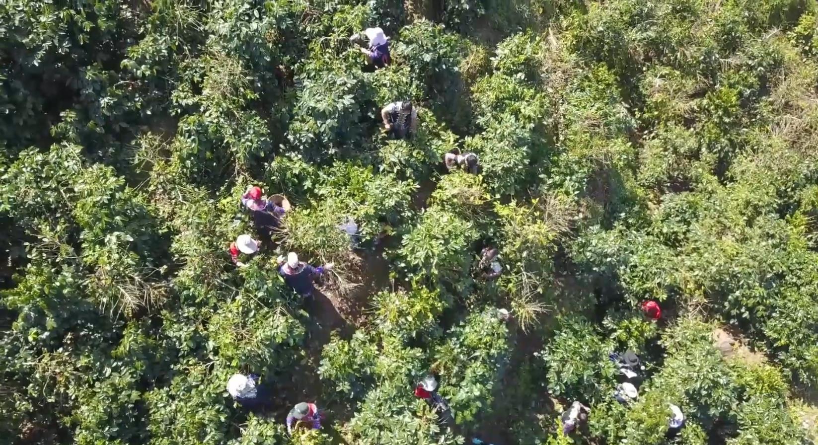 采摘的咖啡鲜果,很快出现在晒场上。今年的咖啡鲜果色泽鲜艳,果粒饱满,豆粒在太阳下闪着光泽。一边是采收忙,另一边技术辅导也不落下。趁着这一股热闹劲,技术员挨户查看咖啡树的健康状况,及时为他们提出“诊疗”方案。