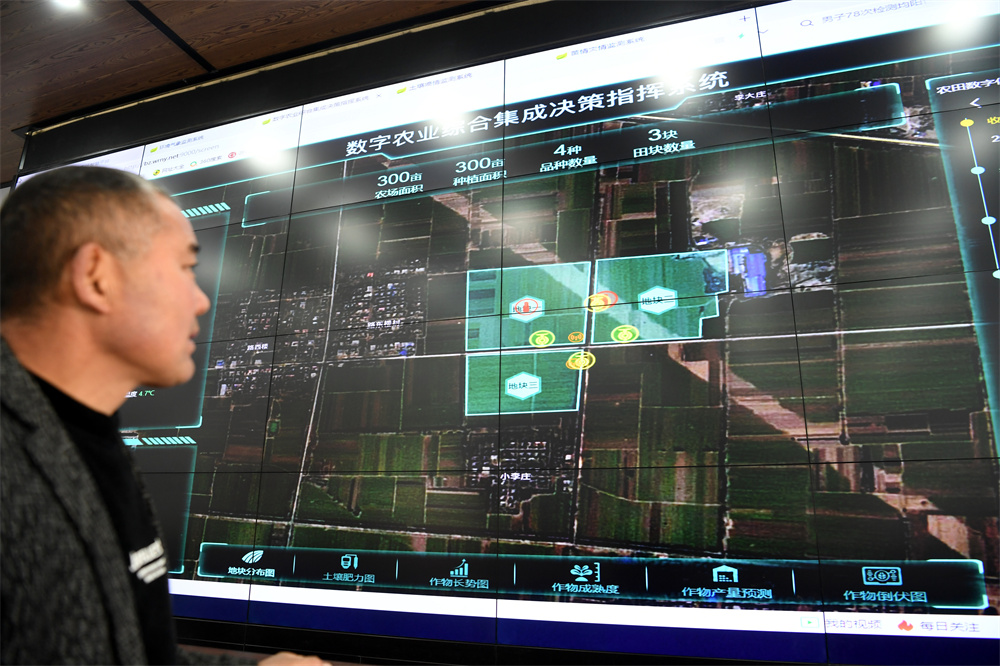 2月11日,安徽省亳州市谯城区赵桥乡“无人农场”工作人员通过“农场大脑”监控麦田情况。新华社记者 刘军喜 摄