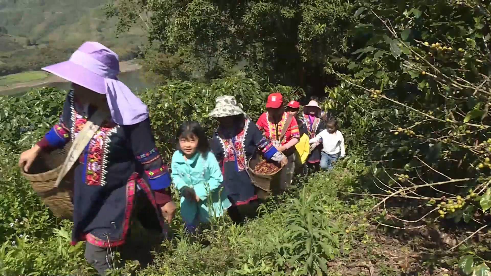 近日,在云南省宁洱县把边江畔,咖啡鲜果缀满树枝,咖农们采果、脱壳、晾晒,一派忙碌景象。今年咖啡产品价格一路向好,跟去年相比,价格大幅上涨。