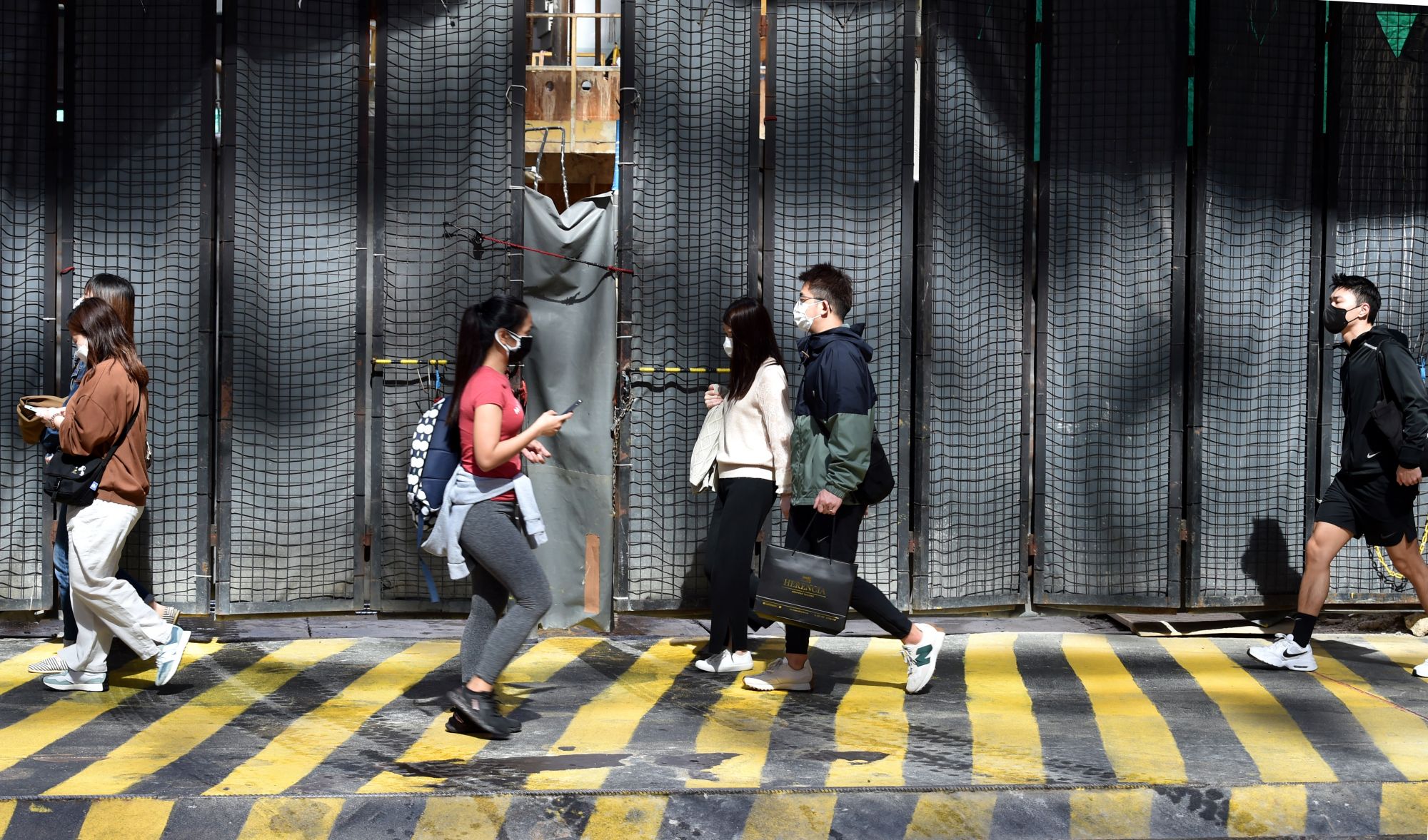 3月1日,在香港中环,市民佩戴口罩出行。 新华社记者 卢炳辉 摄