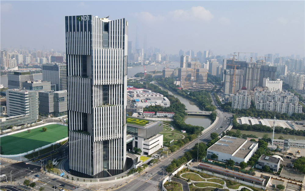这是位于上海浦东新区世博园区的金砖国家新开发银行总部大楼(2021年9月28日摄,无人机照片)。新华社记者 方喆 摄