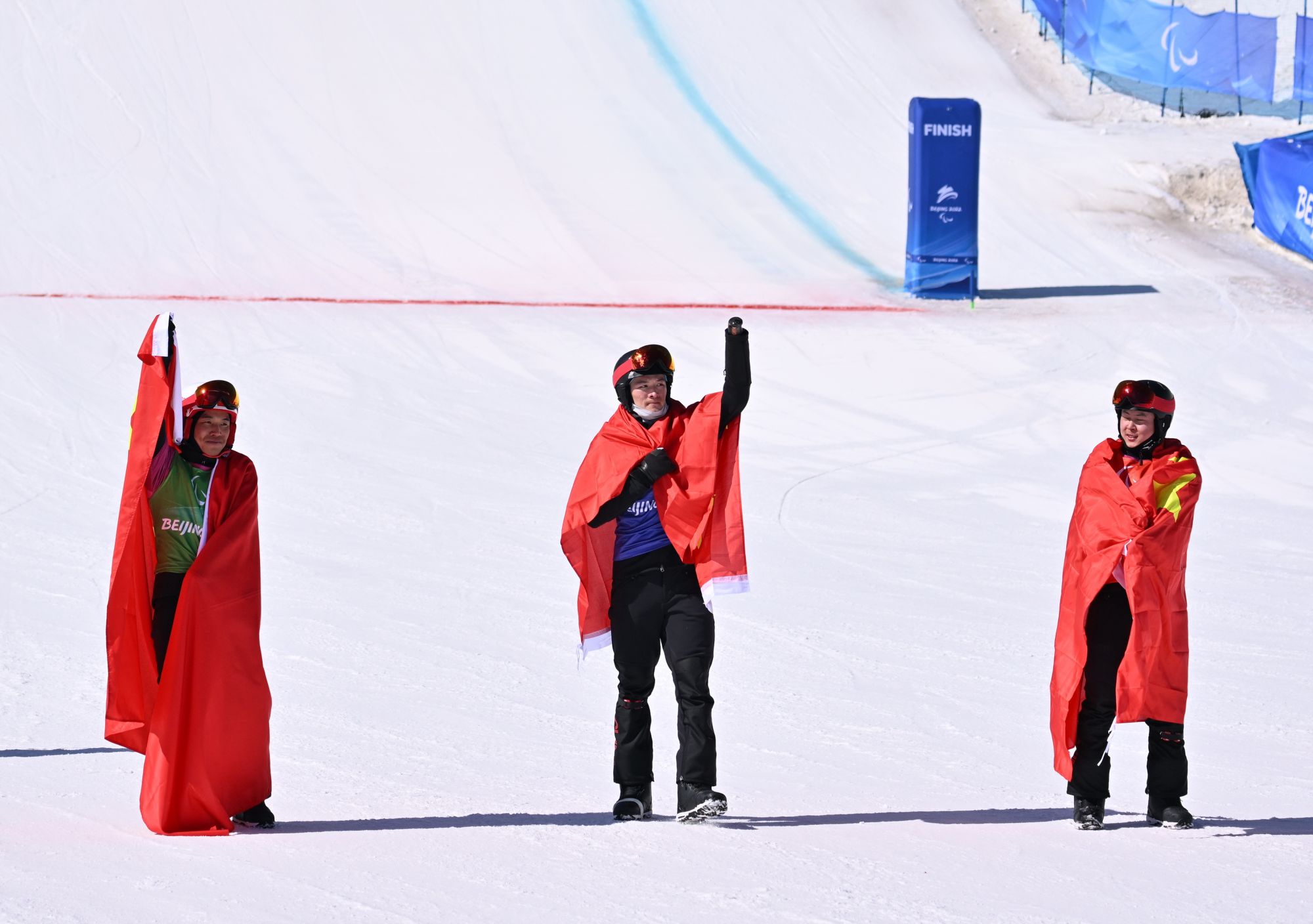 大决赛起点处四位选手全部是同一代表队的运动员、终点处同时闪耀三面五星红旗——中国队不但一举实现了奖牌“零”的突破,还创造了该项目在冬残奥会上从未有过的“名场面”。最终,19岁小将纪立家摘得金牌,王鹏耀获得银牌,朱永钢因与张义琦发生碰撞在赛道中摔倒获得铜牌。另一位中国小将江紫豪最终排名第七。