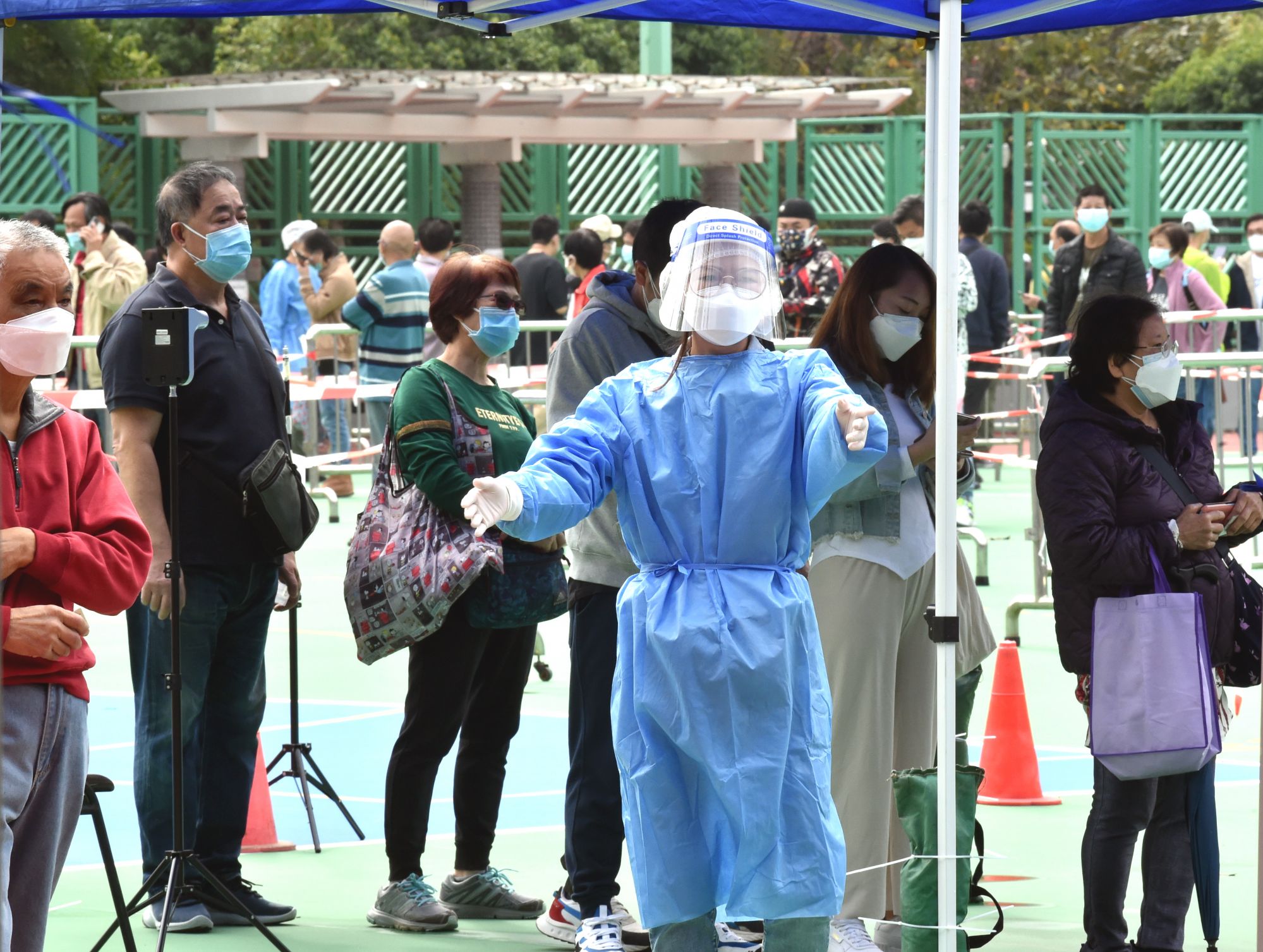 3月7日,在香港马鞍山流动检测站,工作人员引导市民做核酸检测。新华社记者 卢炳辉 摄