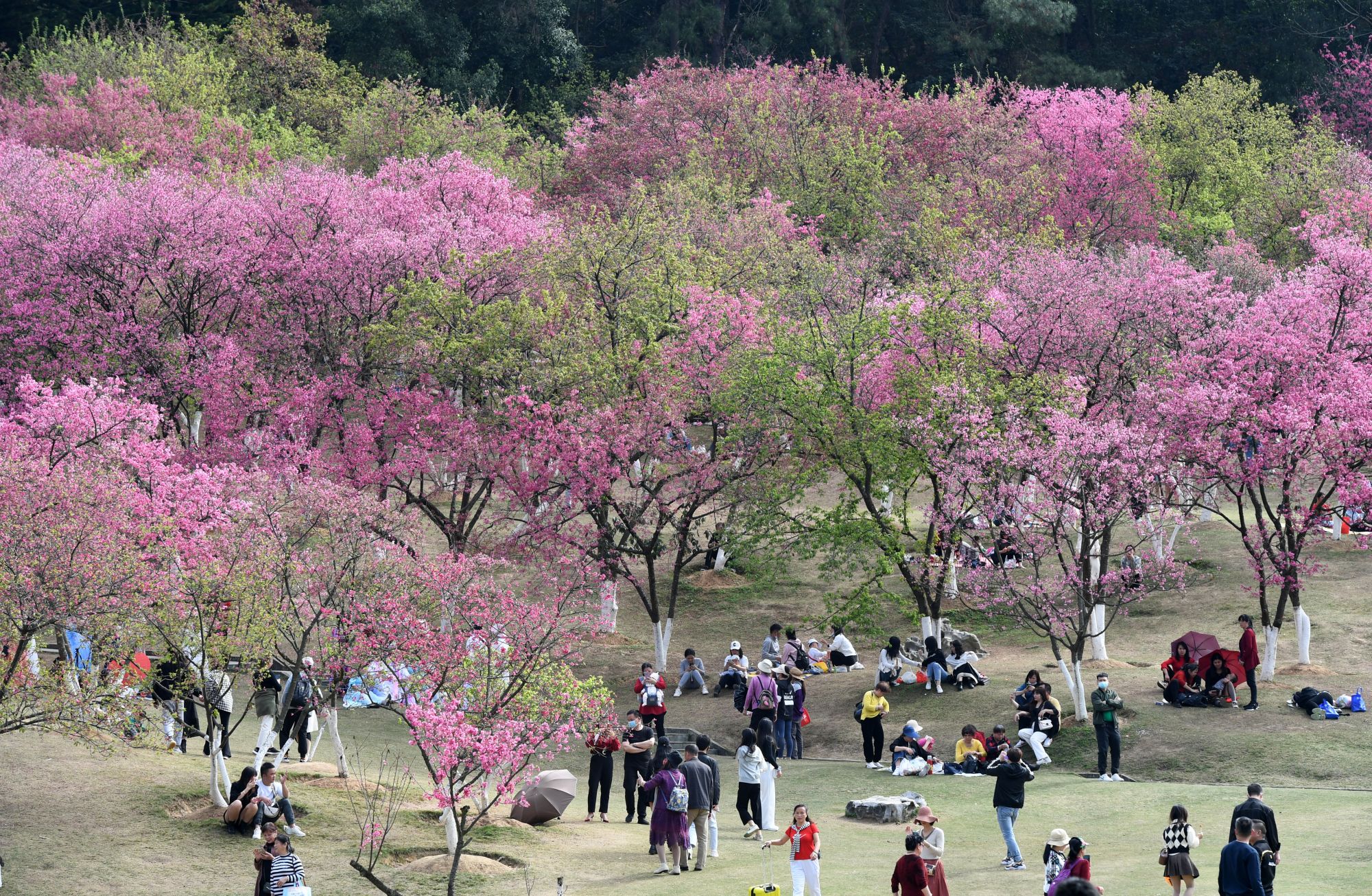 ↑3月7日,游人在广西南宁市石门森林公园游玩。新华社记者 陆波岸 摄