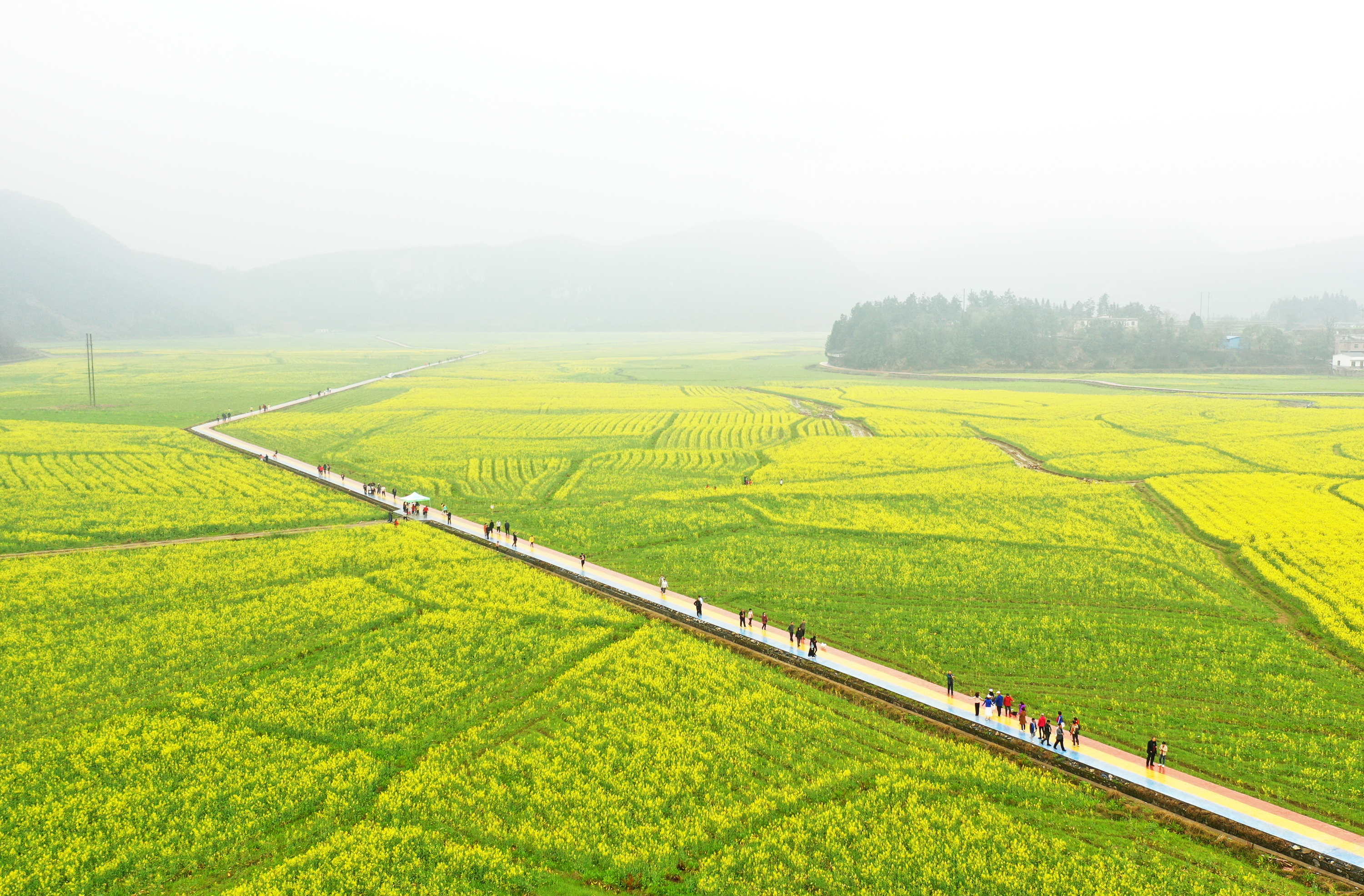 ↑3月6日拍摄的贵州省贵定县盘江镇油菜花田景色(无人机照片)。新华社发(尹刚摄)