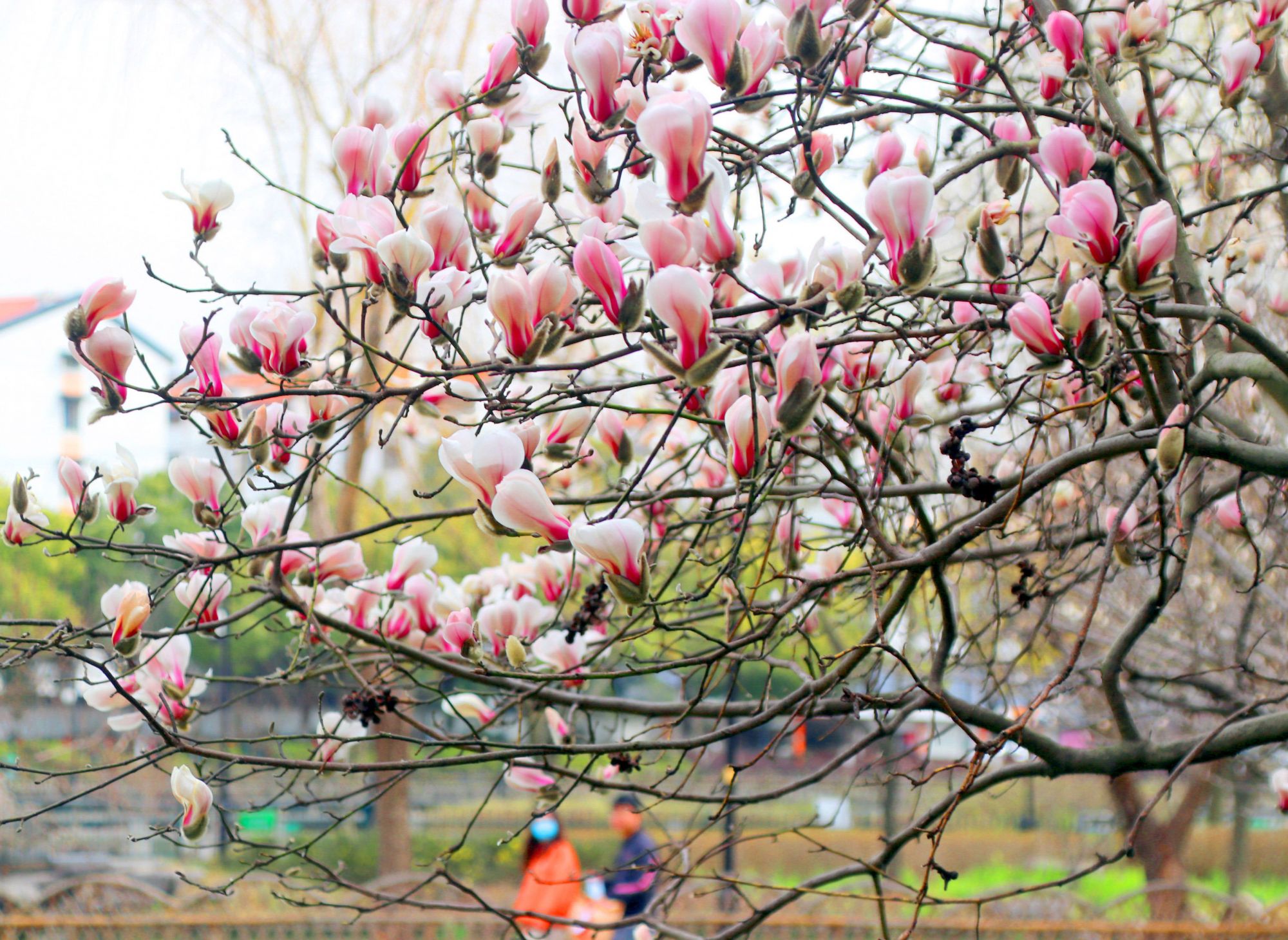 ↑这是3月6日在江苏苏州环古城河旁拍摄的玉兰花。新华社发(杭兴微摄)