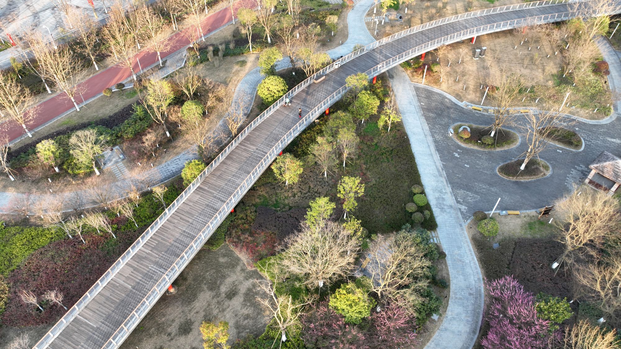 ↑3月7日,市民在贵州省遵义人民公园游玩(无人机照片)。新华社发(罗星汉摄)