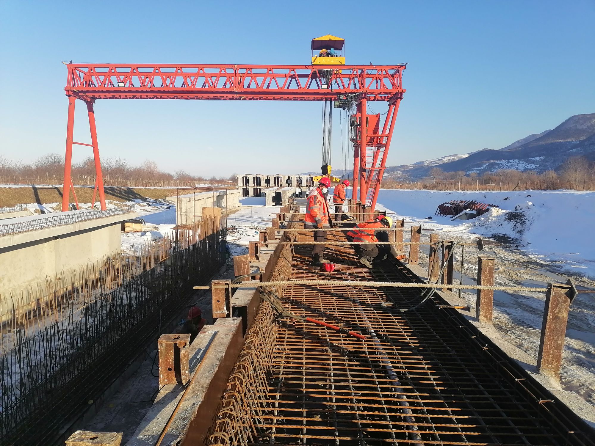 图为2022年1月24日,在格鲁吉亚中部城市哈舒里附近,中铁二十三局员工在格鲁吉亚现代化铁路项目施工现场工作。(新华社发)