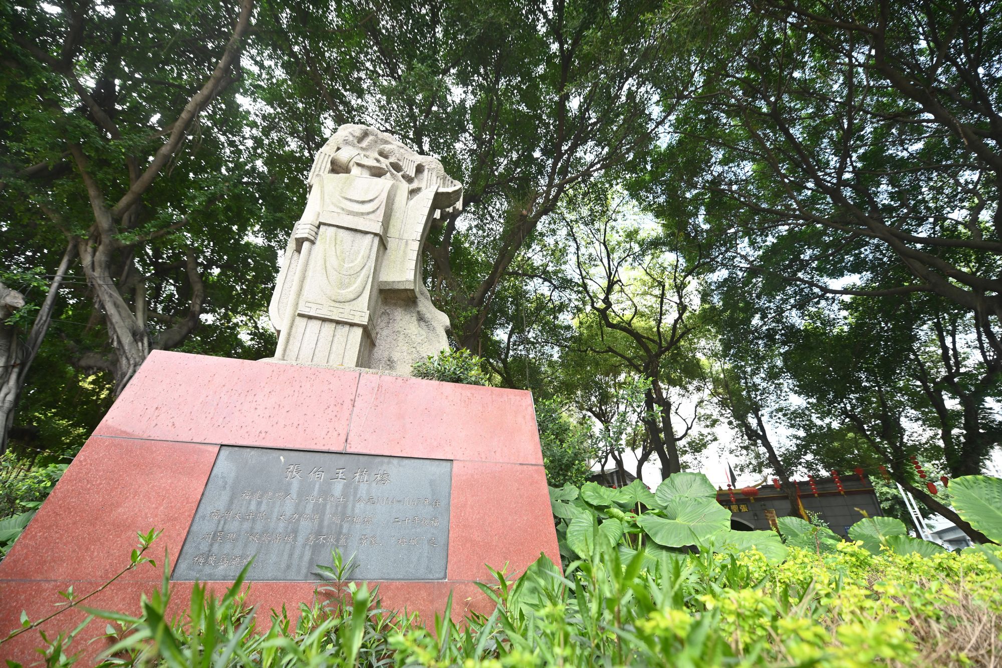 这是2022年3月10日在福州市西河公园拍摄的张伯玉雕像。新华社记者 周义 摄