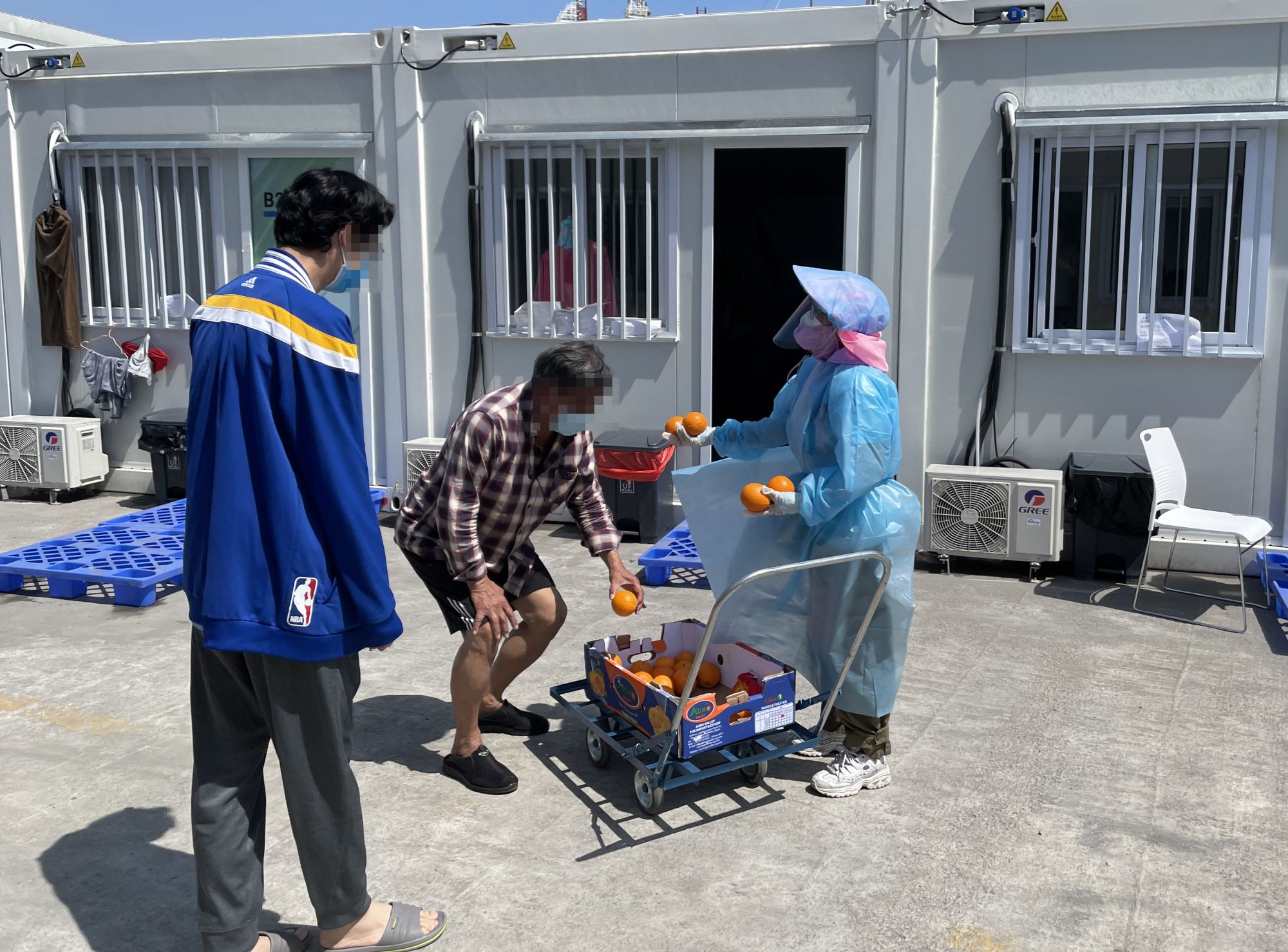 饮食也很重要。青衣方舱医院不断改善一日三餐,注重午餐和晚餐的蛋白质摄入量。我和邻居们还打电话要了额外的食物,工作人员也不时配发橙子等水果,增加我们的维生素摄入量。我自己还带了一些酸奶。