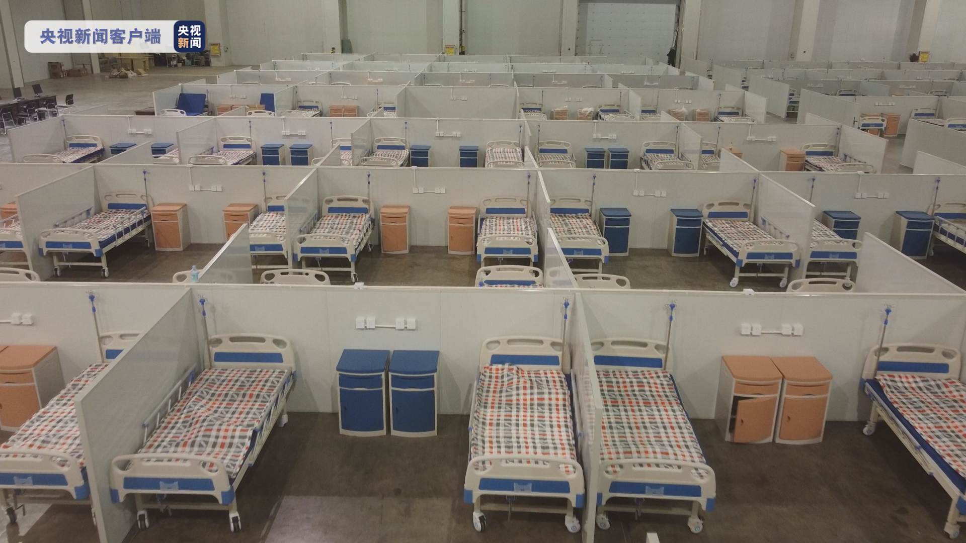 3月17日,总台记者在河北廊坊国际会展中心看到,一座大约有1100张床位的方舱医院正在加紧建设中,床上已经铺好了被褥,牙刷、毛巾等洗漱用品也正在摆放中。医护人员正在做接管前的准备工作,即将投入使用。