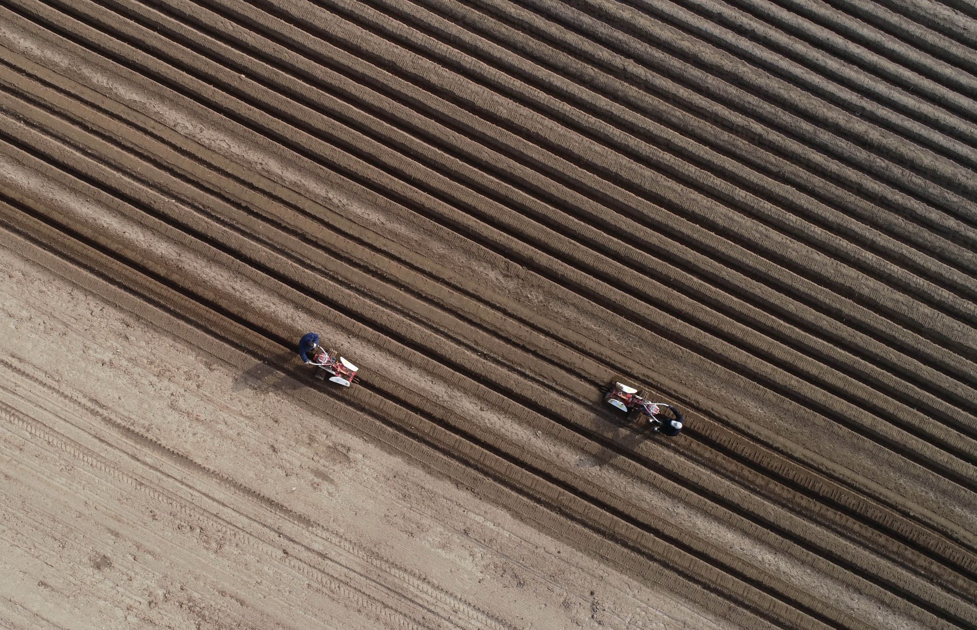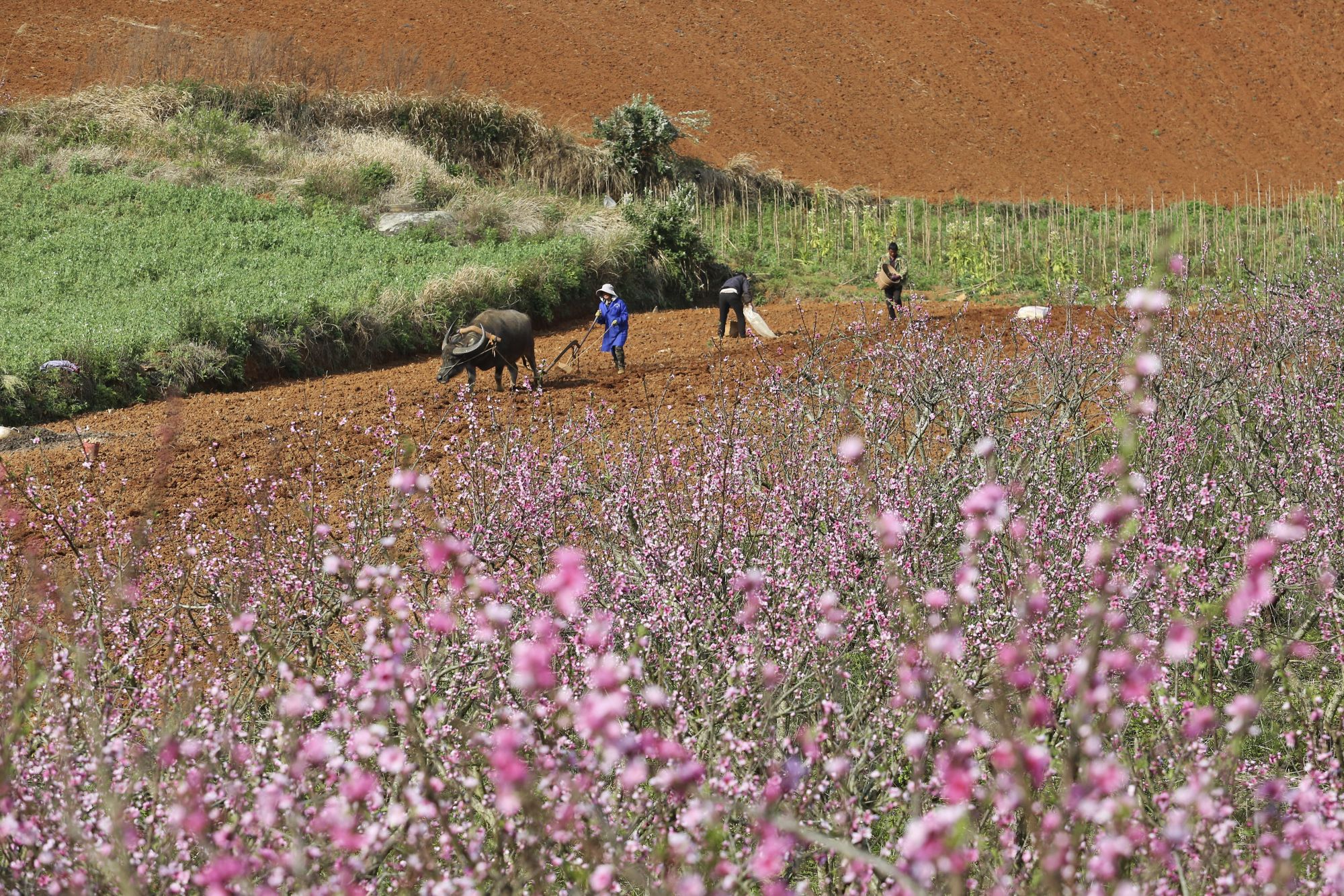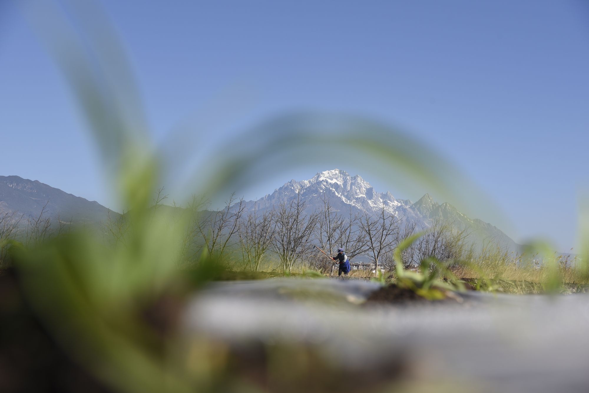 ↑ 在云南省丽江市玉龙县黄山镇,村民在地里劳作。