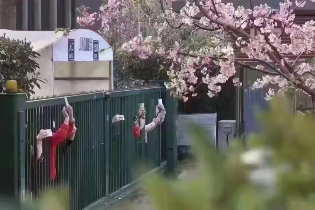 有朋友给记者转发来了这张照片:“满园春色”已经开放,暂时被封闭管理的小区里,数只手机“出墙来”。人们不希望春光独自溜走,于是更加配合地选择“同向而行”。他转发后说,“上海还是一个有腔调的地方”。