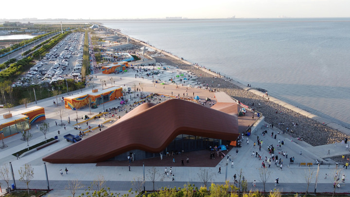 沿着位于天津市滨海新区东疆港区海岸线漫步,一只面朝大海的“贝壳”、一座沿海岸线起伏的“沙丘”和一架巨大的“纸飞机”映入眼帘,这里是天津市东疆亲海公园。春回大地,海风习习,来这里游玩看海的市民络绎不绝。