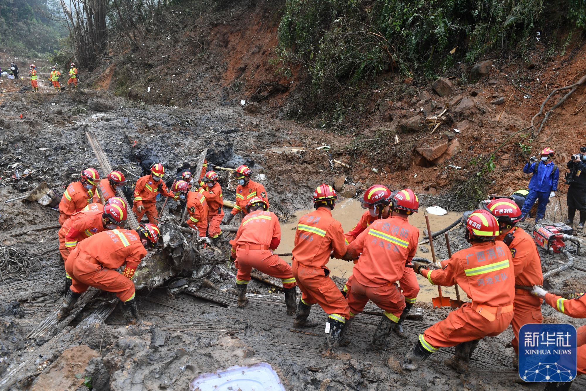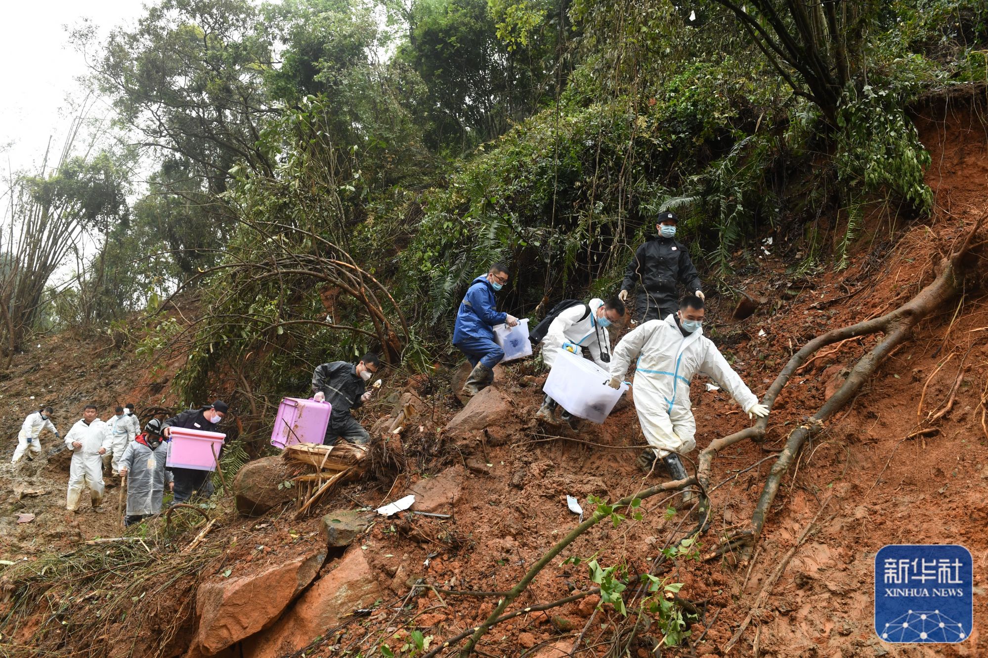 3月24日,藤县空难搜寻工作持续展开。搜救人员在广西梧州藤县事故核心区继续搜寻失事飞机的另一个飞行数据记录仪(黑匣子)和相关残骸。