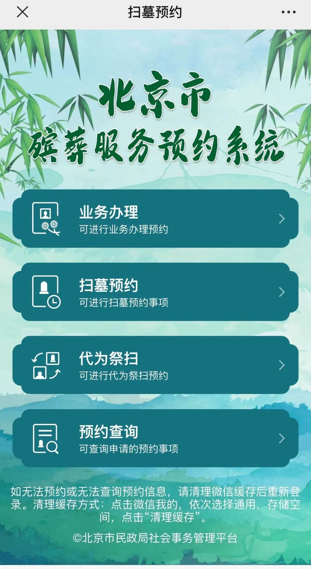北京西郊风景区的福田公墓工作人员介绍,市民关注并进入“北京社会建设和民政”微信公众号,选择“殡葬服务预约”,点击“代为祭扫”,即可在页面内选择具体的祭扫机构。选择预约祭扫时间,以及输入逝者姓名、墓穴证号等信息,工作人员会安排人员代为祭扫。工作人员强调,只要市民预约,一定会完成祭扫工作。