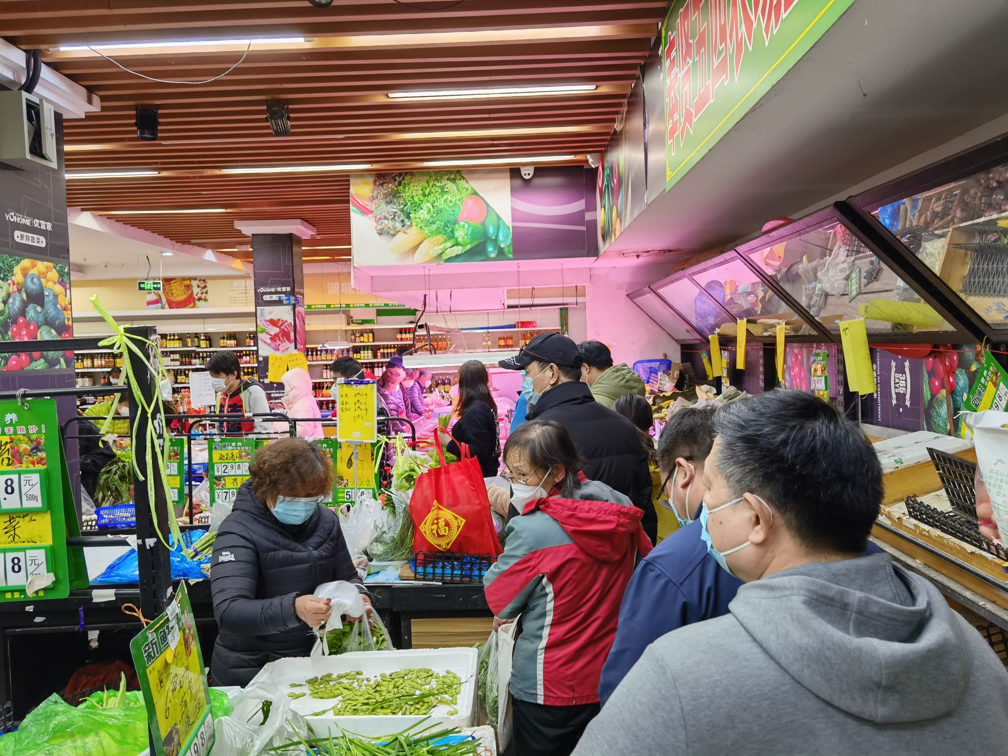 家住浦东新区高桥镇的居民王慧法,27日晚上8点30分左右看到封控消息后的第一反应,就是到附近的超市多买些菜,以备未来四天的需要。