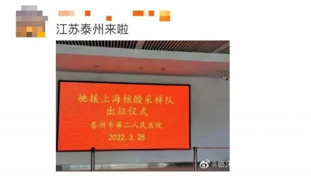 “上海感谢您!”3月28日,浙江、江苏两省分别派出1500人、500人检测队伍抵达上海浦东,支援上海新一轮网格化核酸筛查。