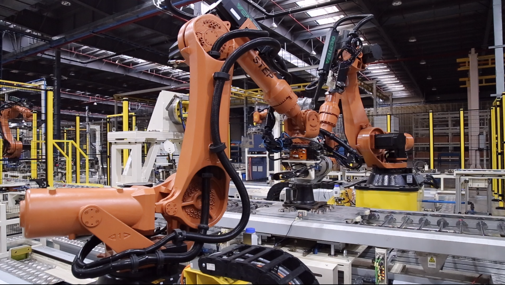 一台机器人灵巧地握住一只“手臂”,精准放置到位,另一台机器人“手持”螺丝钉飞速旋转,不到3秒就完成一组螺丝的锁附。机器人会判断每一颗螺丝拧紧的程度,保证恰到好处。