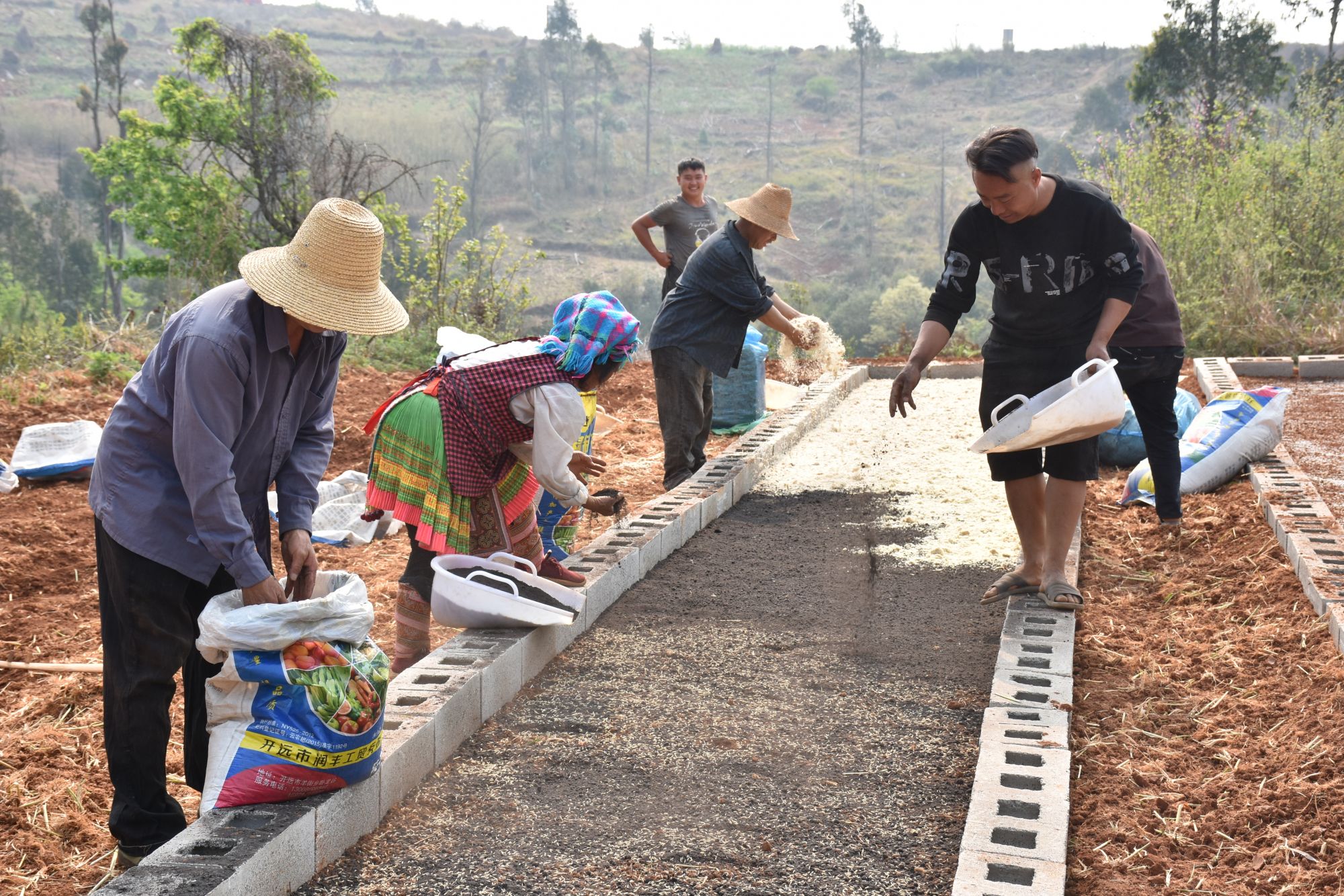 云南省开远市灵泉街道群众正在育秧。新华社发(佘菊 摄)