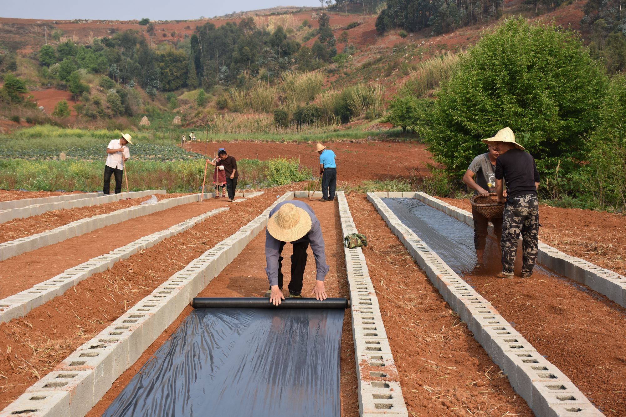 云南省开远市灵泉街道群众正准备育秧。新华社发(佘菊 摄)