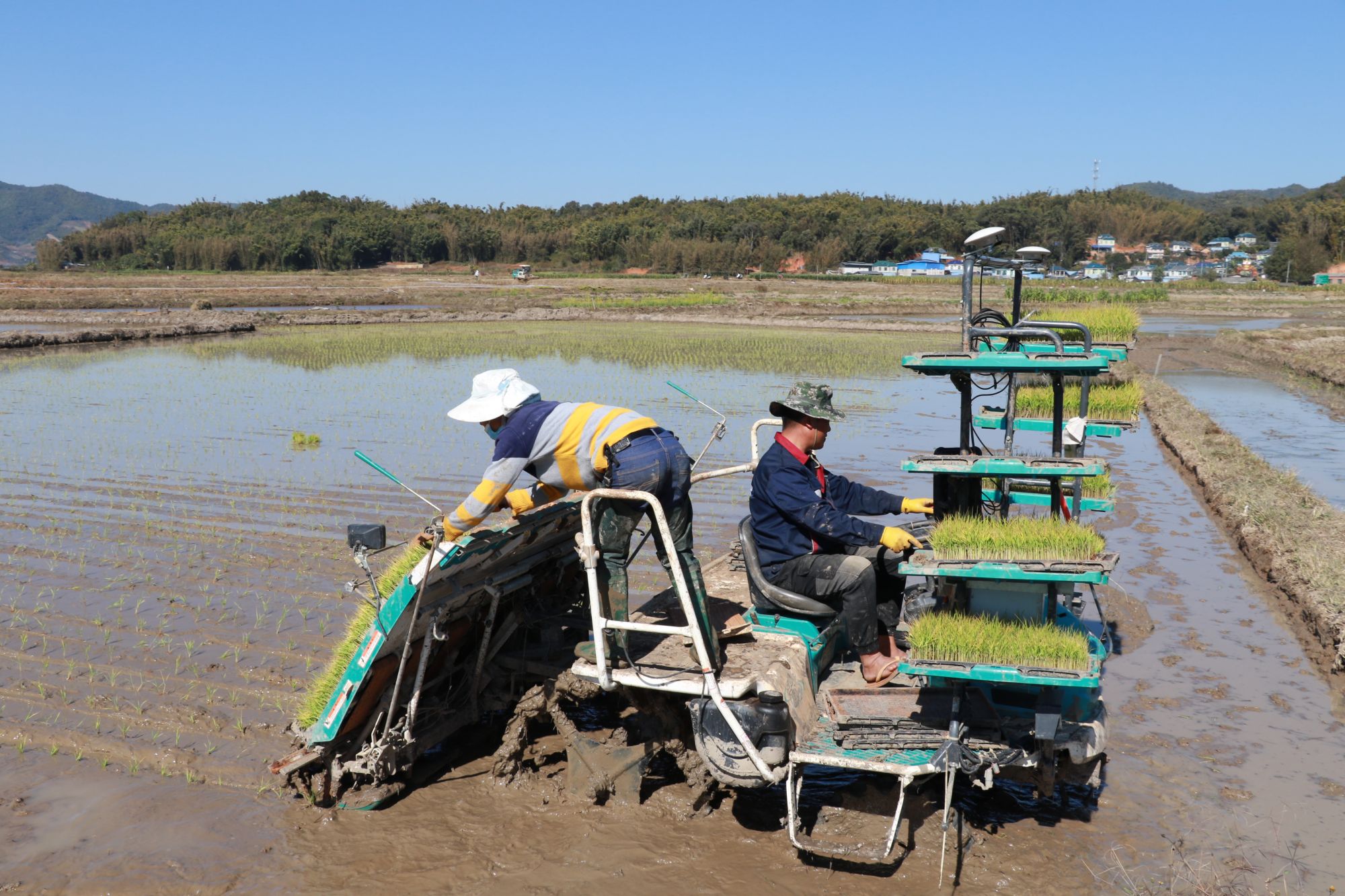 在云南省勐海县勐遮镇,农机手正操作插秧机。新华社发(杨正吉 摄)