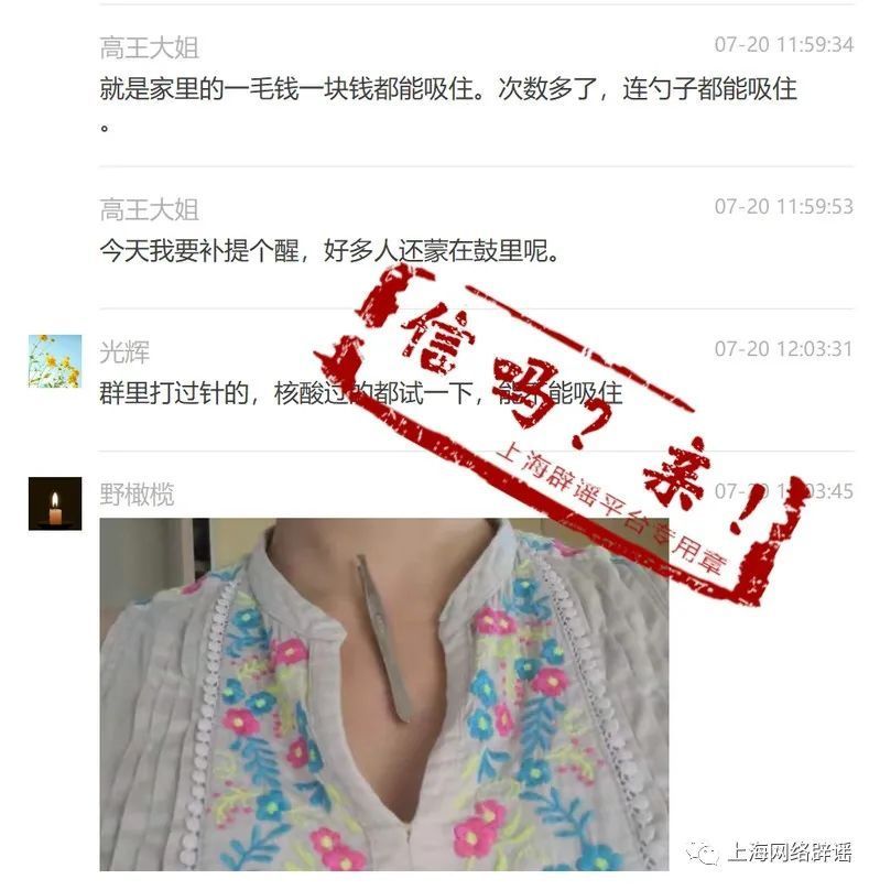 其实,去年9月,就有人通过网络传播称“打疫苗后胳膊能吸附铁勺”,上海辟谣平台已辟谣。
