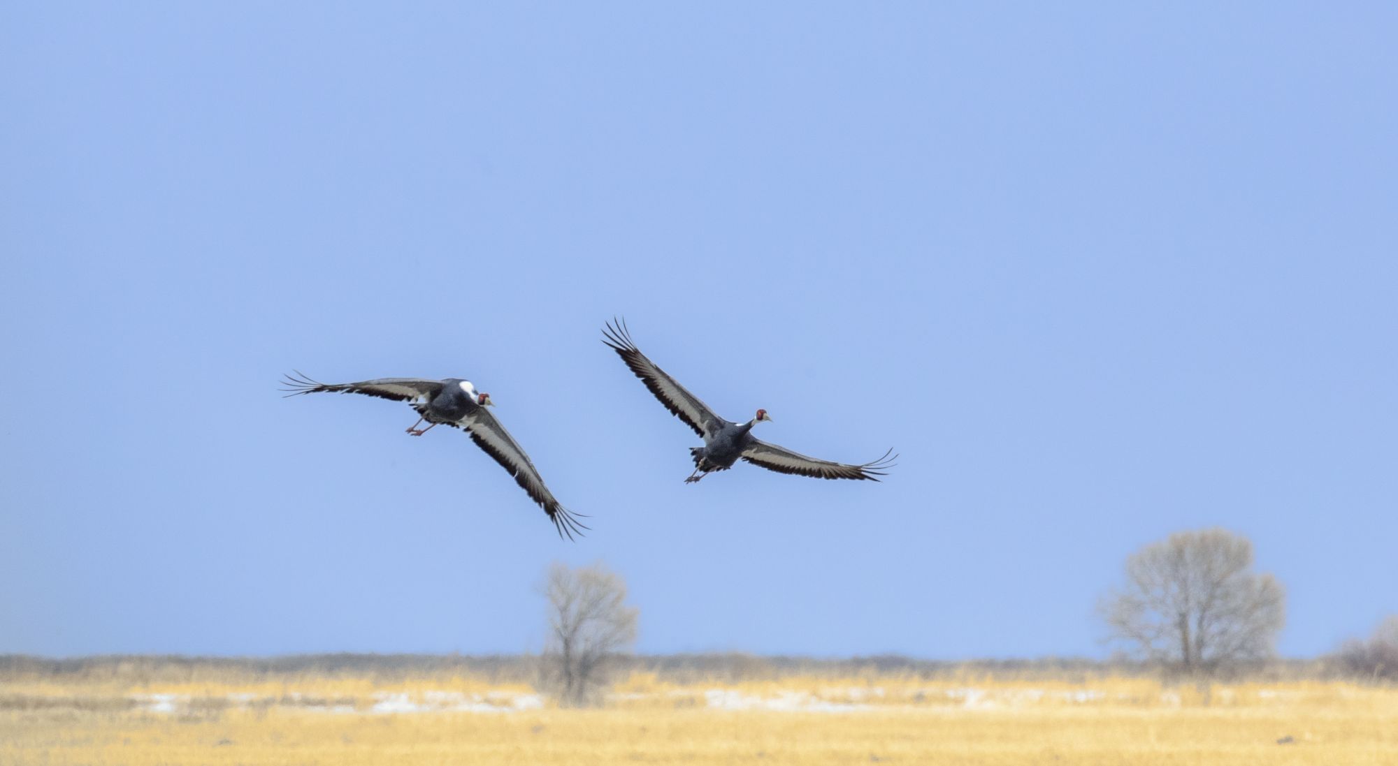 3月28日,在七星河国家级自然保护区,候鸟在天空中翱翔。新华社发(梁峰洵摄)