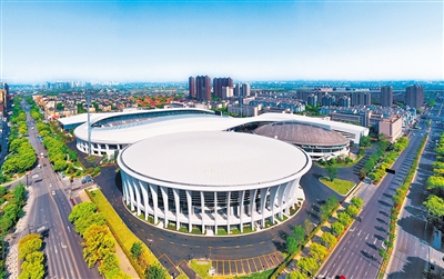 位于杭州市的“大小莲花”及“亚运三馆”。“亚运三馆”由综合训练馆、主体育馆、游泳馆组成,外形酷似张开双翅的蝴蝶。李 忠摄(中经视觉)