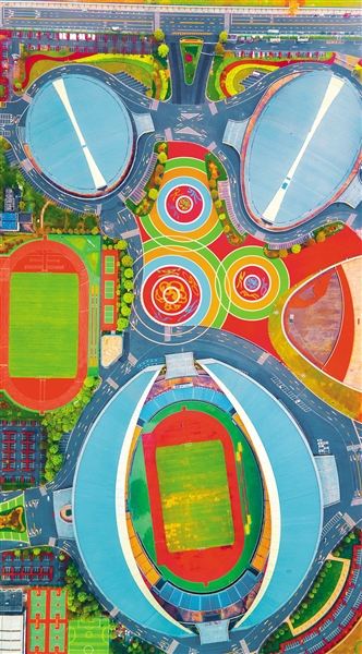 俯瞰杭州市亚运会金华赛区场馆。金华市有杭州亚运会三个比赛场馆、四个训练场馆和运动员分村,全部通过亚组委赛事功能验收。胡肖飞摄(中经视觉)