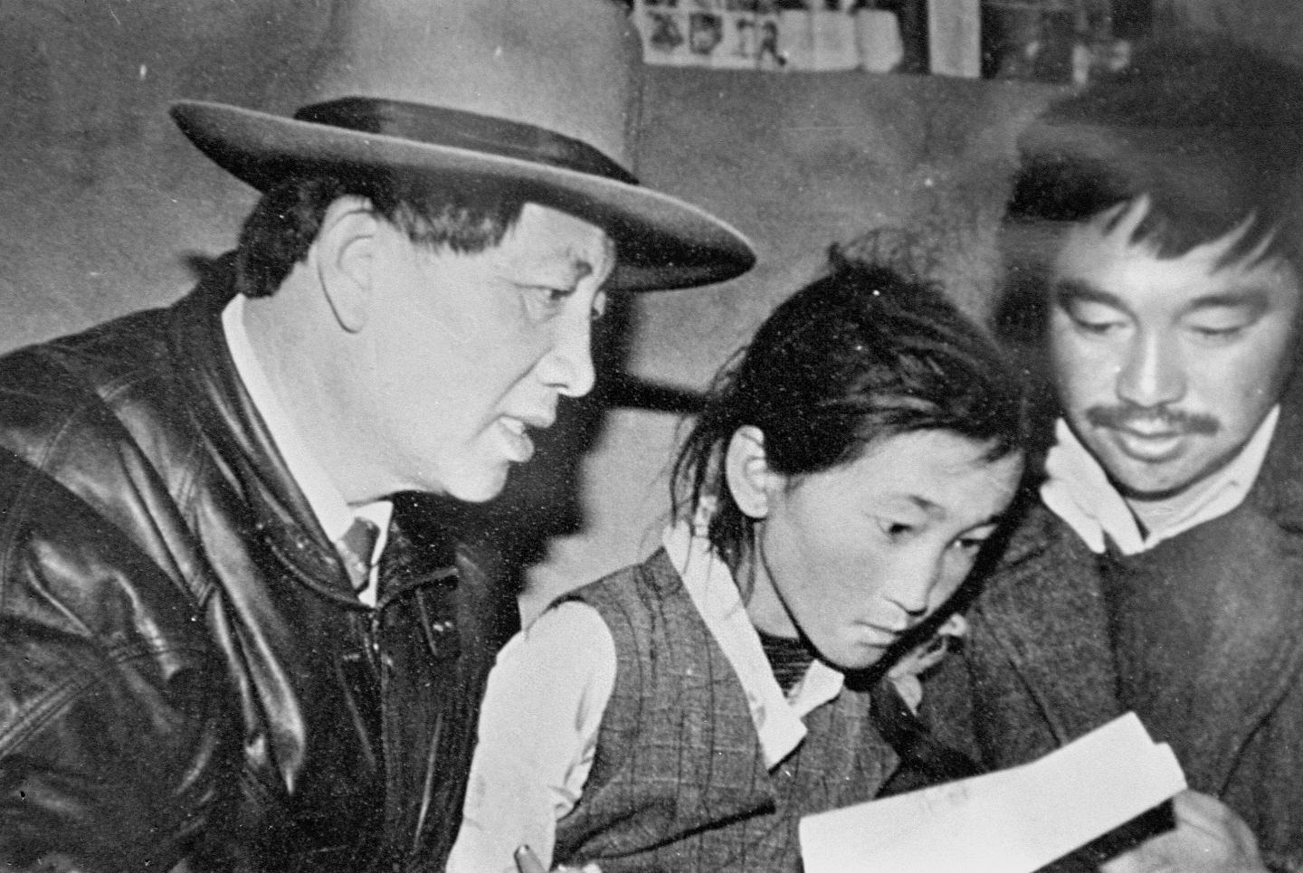 在西藏工作期间,孔繁森(左)在辅导藏族儿童读书(资料照片)。 新华社发