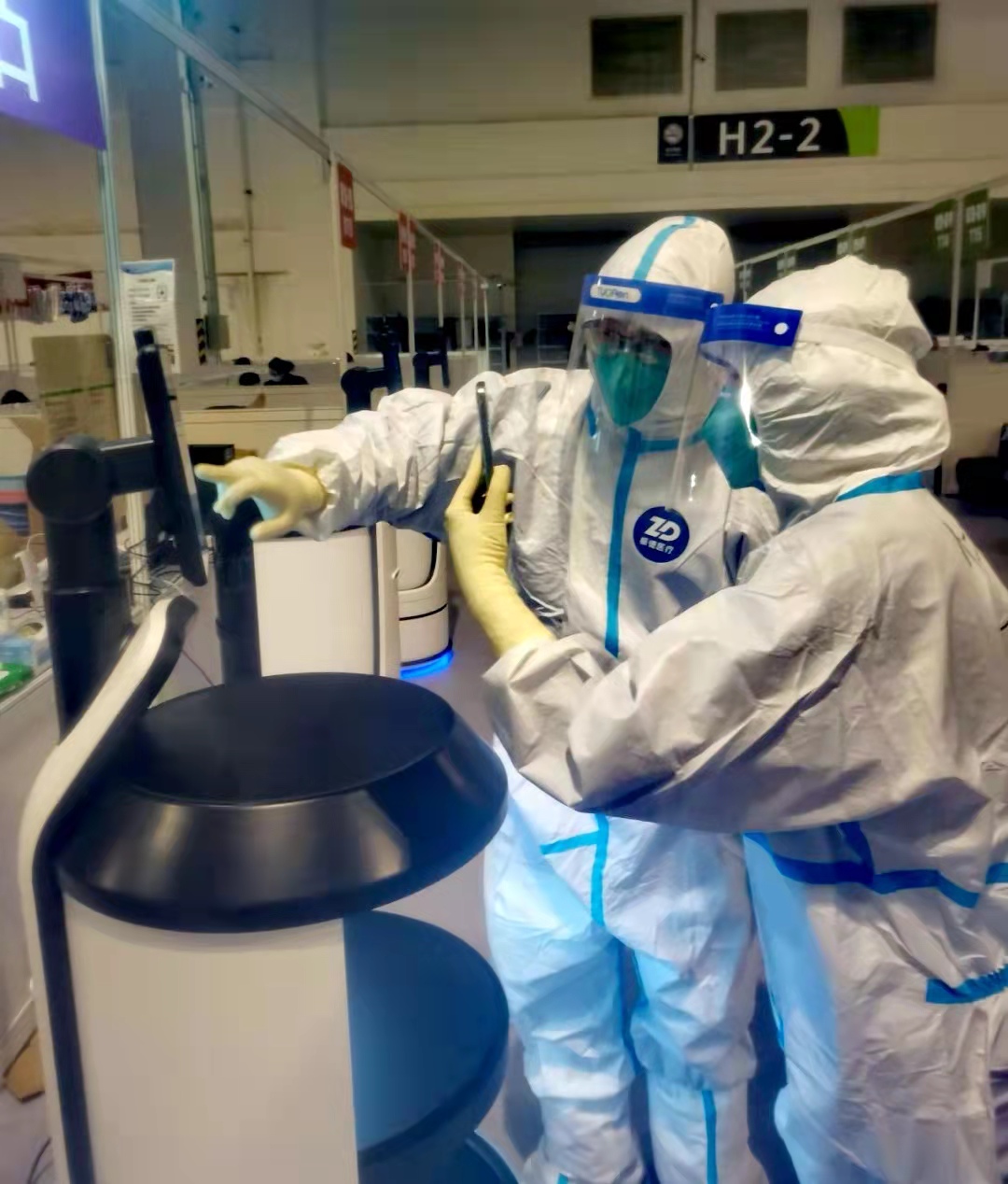 在上海电信、上海联通、上海移动、上海铁塔等通信企业的共同努力下,部署在上海新国际博览中心方舱医院的4G/5G网络、光纤网络、云WiFi等搭配使用,让医护人员、患者以及各种机器人都能各取所需。