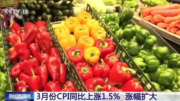 从CPI来看,1—3月平均,全国居民消费价格比上年同期上涨1.1%。3月份当月,全国居民消费价格同比上涨1.5%。涨幅比上月有所扩大。食品中畜肉类价格下降幅度较大,带动食品整体价格下降较多;食品中,鲜菜、蛋类、鲜果价格、水产品以及粮食价格同比均有上涨。