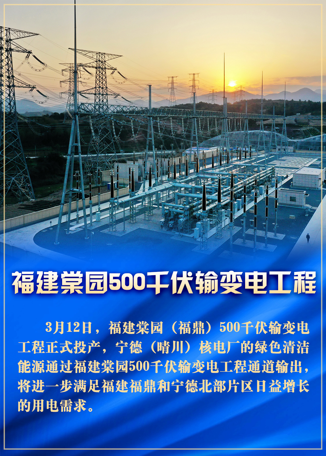 ↑3月12日拍摄的福建棠园(福鼎)500千伏输变电工程项目现场。