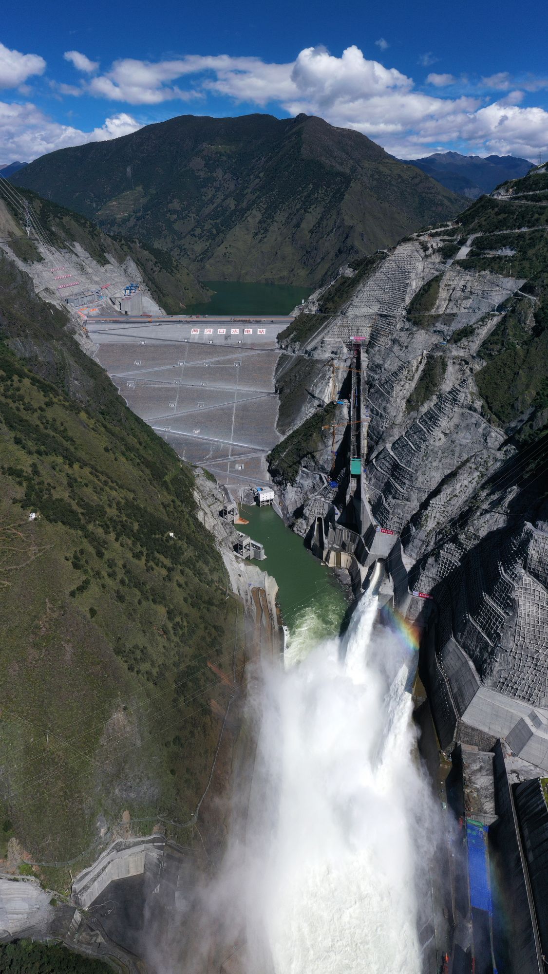 ↑这是2021年9月23日拍摄的正在泄洪的雅砻江两河口水电站。
